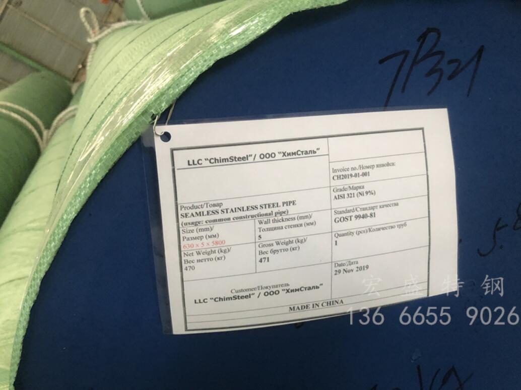 公司特色產(chǎn)品630mm×5mm不銹鋼無縫鋼管檢驗合格出口俄羅斯